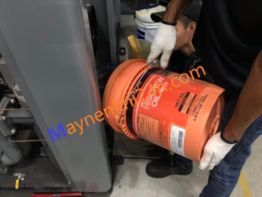 – Khi dùng dầu máy nén khí Hitachi chính hãng mà khi khách hàng cần thay thế dầu máy nén khí tương đương, chúng ta cần xả sạch dầu máy nén khí cũ và tráng lại một ít dầu máy nén khí mới rồi xả lại một lần nữa. Sau đó ta đổ dầu máy nén khí mới vào, tránh tình trạng keo dầu máy nén khí xảy ra. Khi đó chi phí tốn kém và hiệu suất máy nén khí sẽ bị giảm đi.